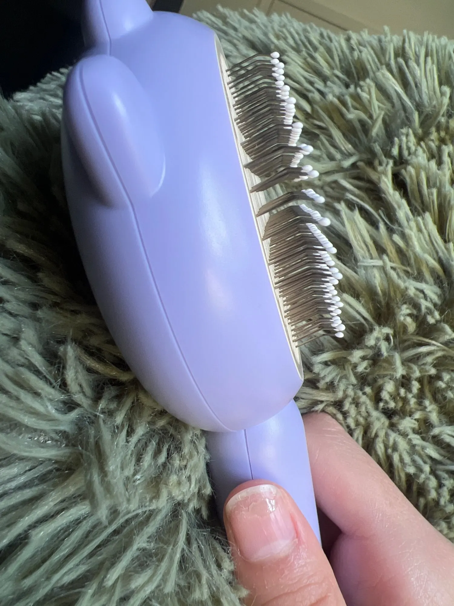 - 😻SELF-CLEANING NEEDLE COMB: After brushing off the hair with our Pet Brush, press the cleaning button to remove the residual hair on the brush. Takes only about 5 seconds to clean due to the slicker clever brush self-cleaning feature. This significantly saves the time and energy for grooming and cleaning.