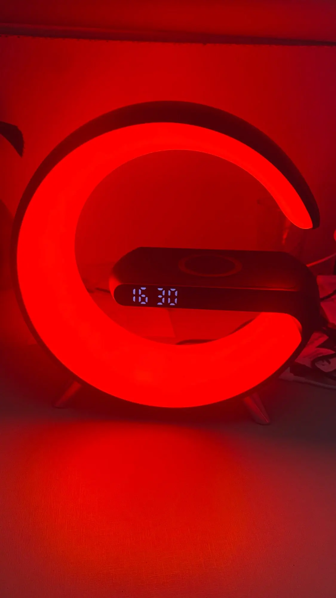 G-Lamp is a multi-functional device that combines a digital alarm clock, speaker, wireless charger, and a color-changing LED lamp.